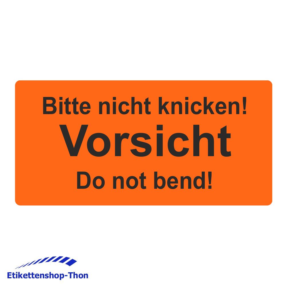 - Aufdruck: "Bitte nicht knicken! Vorsicht Do not bend!" in schwarz