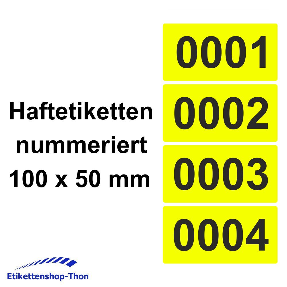 Haftetiketten - nummeriert - 100 x 50 mm - Leuchtgelb
